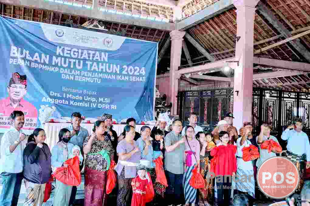 Tabanan, PancarPOS | Anggota Komisi IV DPR RI dari Fraksi PDI Perjuangan, Drs. I Made Urip, M.Si., kembali menggelar kegiatan Bulan Mutu Tahun 2024. Wakil Rakyat Sejuta Traktor yang akrab disapa M-U tersebut, kali ini bersama Badan Pengendalian dan Pengawasan Mutu Hasil Kelautan dan Perikanan Banyuwangi (BPPMHKP) Kementerian Kelautan dan Perikanan (KKP) dalam agenda “Penjaminan Ikan Sehat dan Bermutu” yang dipusatkan di Desa Padangan, Kecamatan Pupuan, Tabanan, pada Senin (26/8/2024). Pada kesempatan itu, Ketua DPP PDI Perjuangan membidangi Koperasi dan UMKM itu, membagikan oleh-oleh bantuan 800 paket ikan yang diserahkan secara simbolis bersama Anggota DPRD Provinsi Bali terpilih di Dapil Tabanan, Ni Made Usmantari bersama sejumlah perbekel dan Ketua Ranting PDI Perjuangan di Kecamatan Pupuan beserta para ibu hamil dan masyarakat setempat.