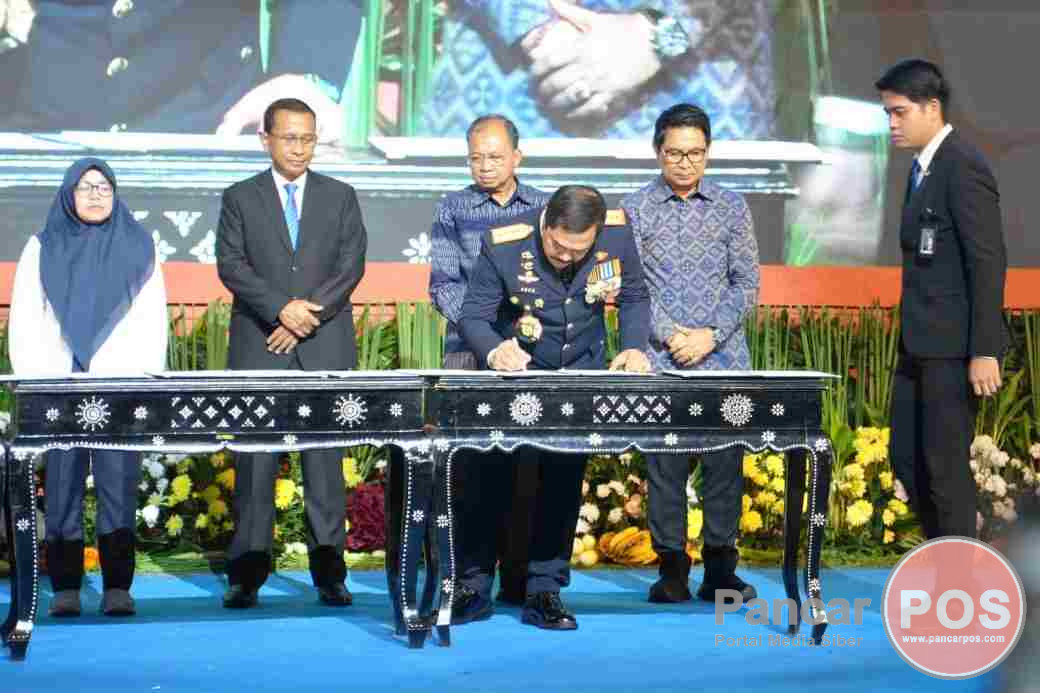 Tangerang, PancarPOS | Gubernur Bali Wayan Koster bersama Bupati Badung Wayan Adi Arnawa menandatangani nota kesepahaman (MoU) dengan Menteri Imigrasi dan Pemasyarakatan (Imipas) RI Agus Andrianto terkait optimalisasi pelaksanaan tugas, fungsi, dan wewenang di bidang imigrasi. Penandatanganan berlangsung dalam rangkaian Tasyakuran Hari Bakti Pemasyarakatan (HBP) ke-62 Tahun 2026 di Auditorium Prof. Muladi, Kampus Politeknik Imigrasi dan Pemasyarakatan Indonesia, Kota Tangerang, Banten, Senin (27/4/2026).