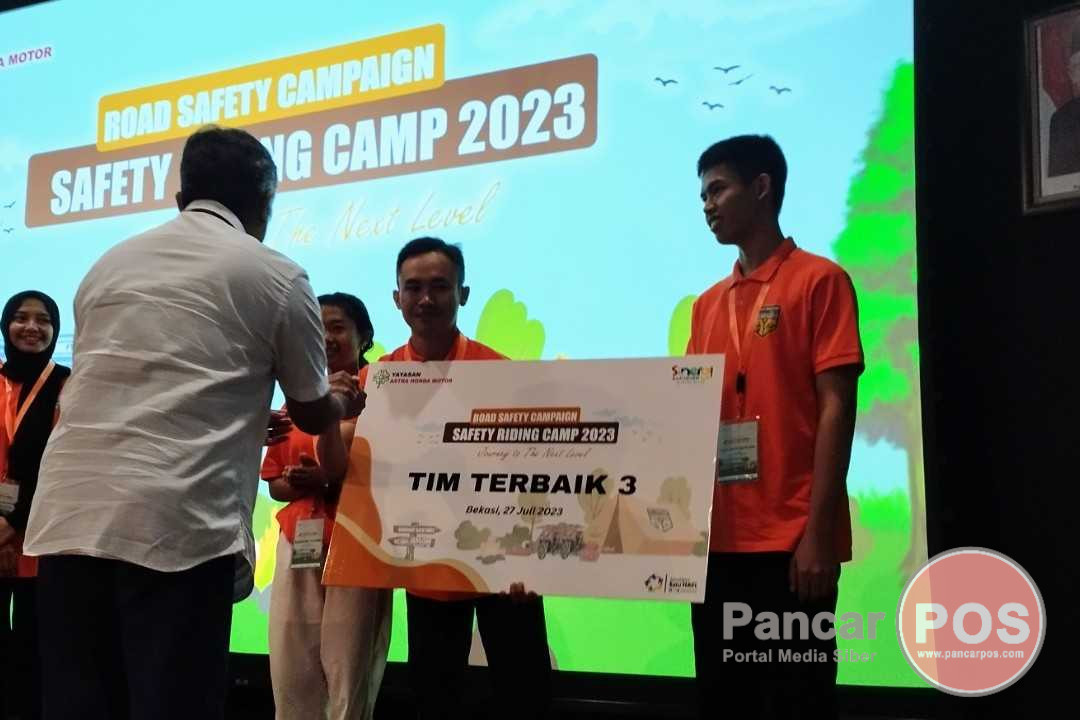 Denpasar, PancarPOS | Puncak gelaran SR Camp 2023, Duta Safety Riding SMANBARA berhasil meraih penghargaan terbaik 3. Sebelum kompetisi di ajang SR Camp ini, telah dilaksanakan tahap seleksi masing-masing SR Lab dengan syarat mengirimkan video terkait #Cari_Aman. Dari hasil tersebut terpilih 2 grup dari siswa SMANBARA yang berhasil lolos pada tahap pengiriman video ini. Kedua grup ini mengikuti serangkaian seleksi SR Camp yang berlangsung di AHM Safety Riding Training Center (AHM SRTC) Deltamas, Bekasi pada 24-27 Juli 2023. Total peserta pada acara ini diikuti sebanyak 36 duta safety riding dari 5 Safety Riding Lab (SRL) dan 6 pengelola dari dua area Taman Lalu Lintas Anak (TLLA).