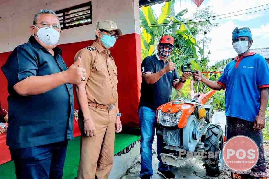 Badung, PancarPOS | Anggota Komisi IV DPR RI dari Fraksi PDI Perjuangan, Drs. I Made Urip, M.Si., kembali mengguyur bantuan aspirasi pertanian untuk para petani dan krama di Kabupaten Badung. Kali ini, Wakil Rakyat Sejuta Traktor itu, menyerahkan secara simbolis seluruh bantuan senilai total Rp1,09 miliar di Bale Subak Pedahanan, Desa Jagapati, Abiansemal, Badung, Senin (28/6/2021). Sebelumnya, Ketua DPP PDI Perjuangan tiga periode yang membidangi Pertanian, Kehutanan dan Lingkungan Hidup ini, menggelontorkan bantuan aspirasi pertanian senilai Rp1,86 miliar di Kabupaten Jembrana, Jumat (25/6/2021). Sementara itu, di Bumi Lahar Karangasem, juga dibombardir bantuan serupa senilai total Rp2,19 miliar di Aula UPTD Balai Pelaksana Penyuluhan Pertarian, Karangasen, Minggu (27/6/2021). Pada kesempatan itu, juga hadir Wakil Bupati Badung Drs. I Ketut Suiasa, SH., bersama Ketua DPRD Badung Dr.Drs. I Putu Parwata, MK.,MM., Anggota DPRD Badung I Made Ponda Wirawan dan Ni Luh Putu Sekarini dan Ni Luh Kadek Suastiari, Kadis Pertanian dan Pangan Badung I Wayan Wijana dan Sekretaris Kadis Perikanan Badung I Wayan Sujana, Camat Abiansemal Ida Bagus Mas Arimbawa, S.Sos., yang dihadiri para pekaseh se-Pesedahan Yeh Lauh.
