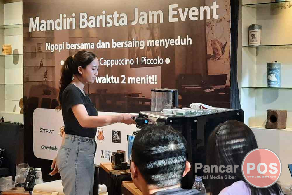 Denpasar, PancarPOS | Untuk melahirkan Barista berkelas dunia, sekaligus membangkitkan gairah ekonomi dari ekosistem kopi di Bali, maka Bank Mandiri menggelar Mandiri Barista Jam Event di Kopi Bali House yang terletak Pertokoan Graha Niaga Sanur No 405 E, Jalan Bypass Ngurah Rai No.4 Sanur Kauh, Denpasar Selatan, Denpasar, pada Minggu (27/8/2023). Ajang lomba Barista dengan tema “Ngopi Bersama dan Barsaing Menyeduh” mengumpulkan 60 Barista di Bali untuk diadu keahliannya dalam kecepatan meracik kopi dengan membawa bahan kopi andalannya sendiri untuk diracik menggunakan espresso mesin selama 2 menit menghasilkan 1 Espresso, 1 Cappucino dan 1 Piccolo tanpa mengurangi rasa, tampilan serta tidak lupa juga untuk tetap menjaga kebersihan areal.