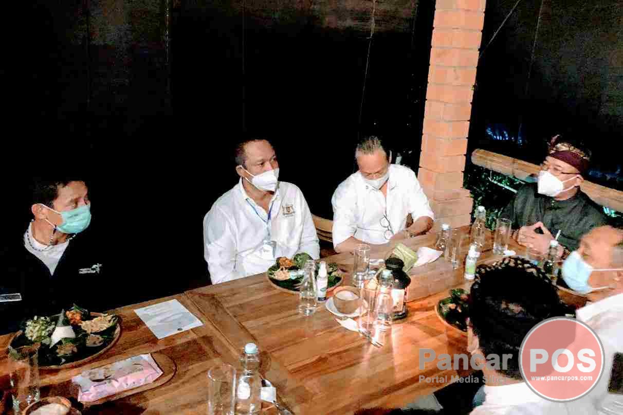 Gianyar, PancarPOS | Gercep, Geber dan Gaspol yang menjadi slogan Menparekraf Dr. H. Sandiaga Salahudin Uno terlihat jelas pada pertemuan singkat bersama Kadin Bali di Desa Wisata Taro, Gianyar, Jumat (29/1/2021). Diskusi yang merupakan tindak lanjut dari pertemuan awal Kadin Bali sowan ke Hotel Inna Kuta tempat menginap Sandiaga Uno atas intruksi Ketum Kadin Pusat, Rosan P. Roeslani. Dimana akhirnya diundang untuk pertemuan lanjutan dan dinner di Desa Wisata Taro Gianyar sekaligus menyaksikan Wisata Kunang Kunang dihadiri langsung oleh Ketua Umun Kamar Dagang dan Industri (Kadin) Provinsi Bali, I Made Ariandi yang didampingi Wakil Ketua bidang Pariwisata Agus Maha Usadha (divisi DTW) dan Dr.(C). I Made Ramia Adnyana, SE.,MM.,CHA (divisi akomodasi). Turut hadir Kadisparda Provinsi Bali Bapak Putu Astawa, Kadisparda Gianyar, Camat Tegallalang, Kades Taro, Ketua Pokdarwis Desa Taro serta undangan lainnya.