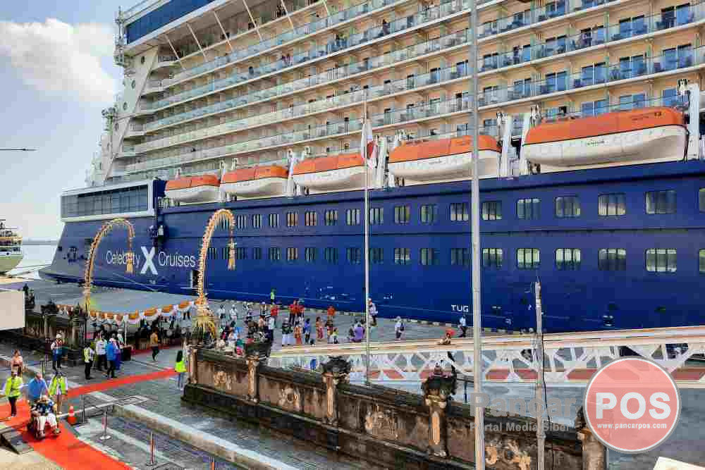 Denpasar, PancarPOS | Pelindo Regional 3 Benoa kembali berhasil menyadarkan kapal berukuran jumbo, kali ini giliran Cruise Celebrity Solstice yang sandar di Pelabuhan Benoa. Kapal dengan panjang 317 meter dan lebar 37 Meter ini merupakan kapal dengan ukuran terbesar yang pernah singgah di Pelabuhan Benoa. Celebrity Solstice tiba dan sandar di Pelabuhan Benoa, Bali, pada Senin Pagi (30/10/2023).