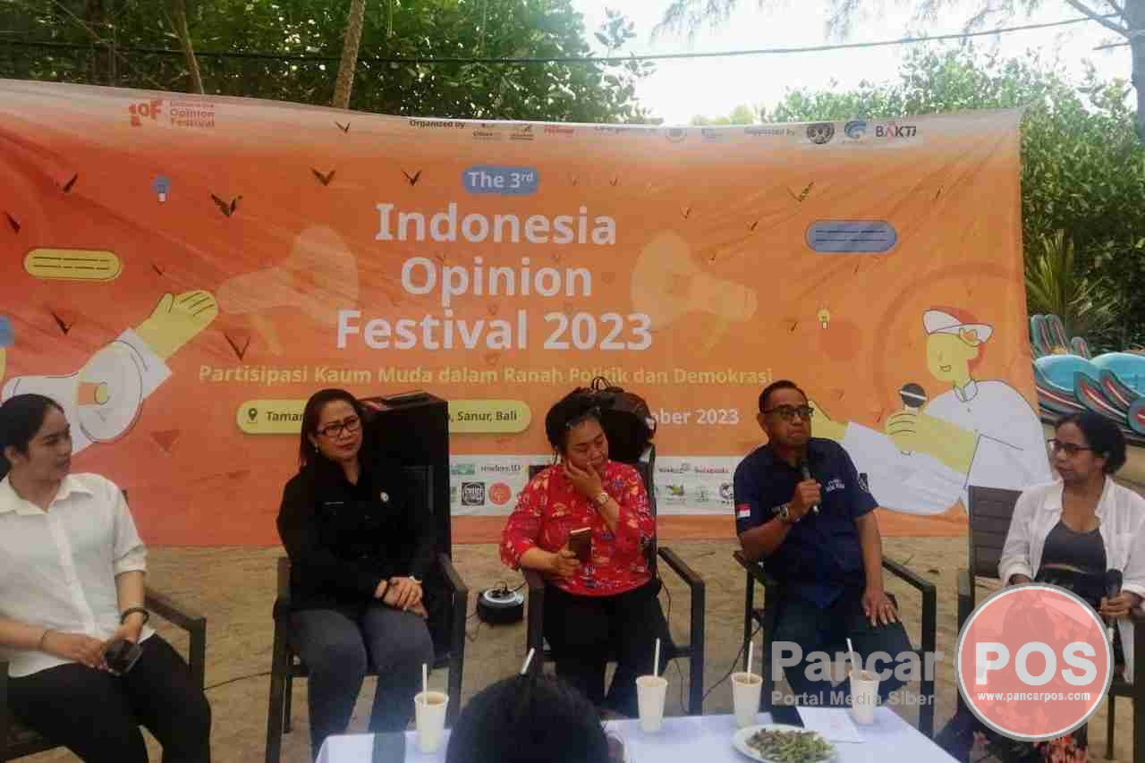 Denpasar, PancarPOS | Beragam diskusi menarik terjadi di Indonesia Opinion Festival (IOF) 2023 yang digelar di Sanur, Denpasar. Salah satu sesi yakni saat membahas peran perempuan dalam politik. Ketua LSM Bali Sruti, Dr. Ir. Luh. Riniti Rahayu, M.Si., mengaku telah melakukan berbagai upaya untuk mendorong peran aktif perempuan dalam kancah politik, dengan cara mendorong mereka berani bicara, menguasai persoalan dan bermental antikorupsi. Kemudian mengarahkan mereka agar bersedia menggunakan hak untuk dipilih, baik sebagai anggota legislatif maupun eksekutif.